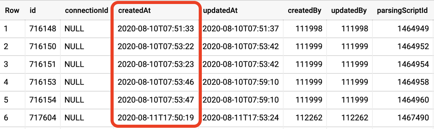 select * from gcp.datasources where createdAt >= ‘2020–08–12’