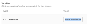 Like with file paths, data engineers have an opportunity to pass values in for their variables when they run a job, either from within the application or via our API.